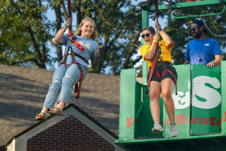 A&S Party Rental's Mobile Zip Line offers a once-in-a-lifetime experience at city events, company picnics, and church festivals all over Dayton and Cincinnati.  Our friendly trained professionals will harness and attach adventurers, making it a fun and safe experience for everybody.  Even so, it is an absolutely thrilling ride! The zip line extends from 180' to 300' and offers an exciting adventure like none other. Additionally, it can be brought right to your campus, city streets, or company parking lot.  Call us at (937) 885-5454 (Dayton) or (513) 315-9110 (Cincinnati) to reserve for your event today!