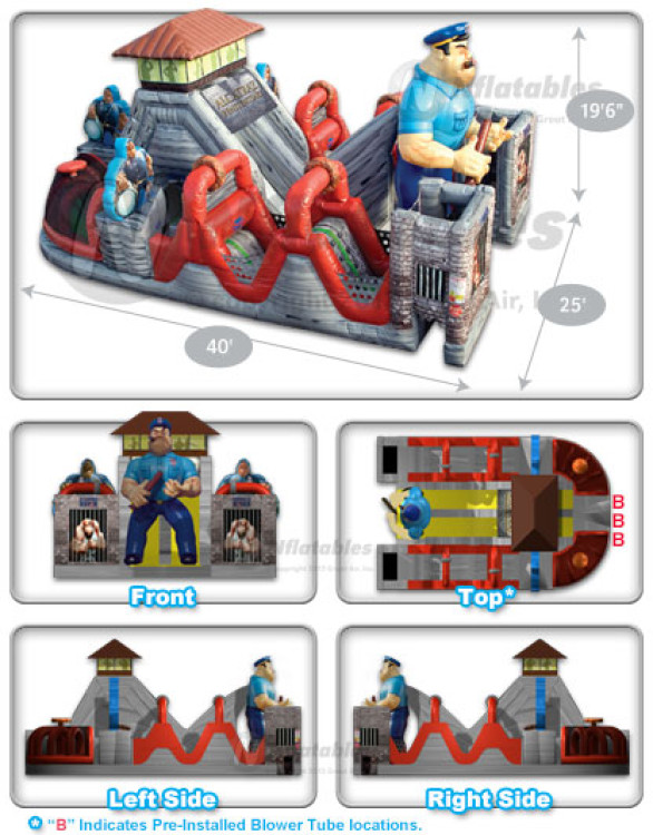 Get away from ordinary inflatables and check out this incredible obstacle course! Break out of your prison cell (perfect for photos and videos!) and navigate and maneuver through a huge maze of difficult obstacles as you try to escape this inflatable prison. Squeezing through tight walls and running down sewer pipes has never been so fun!